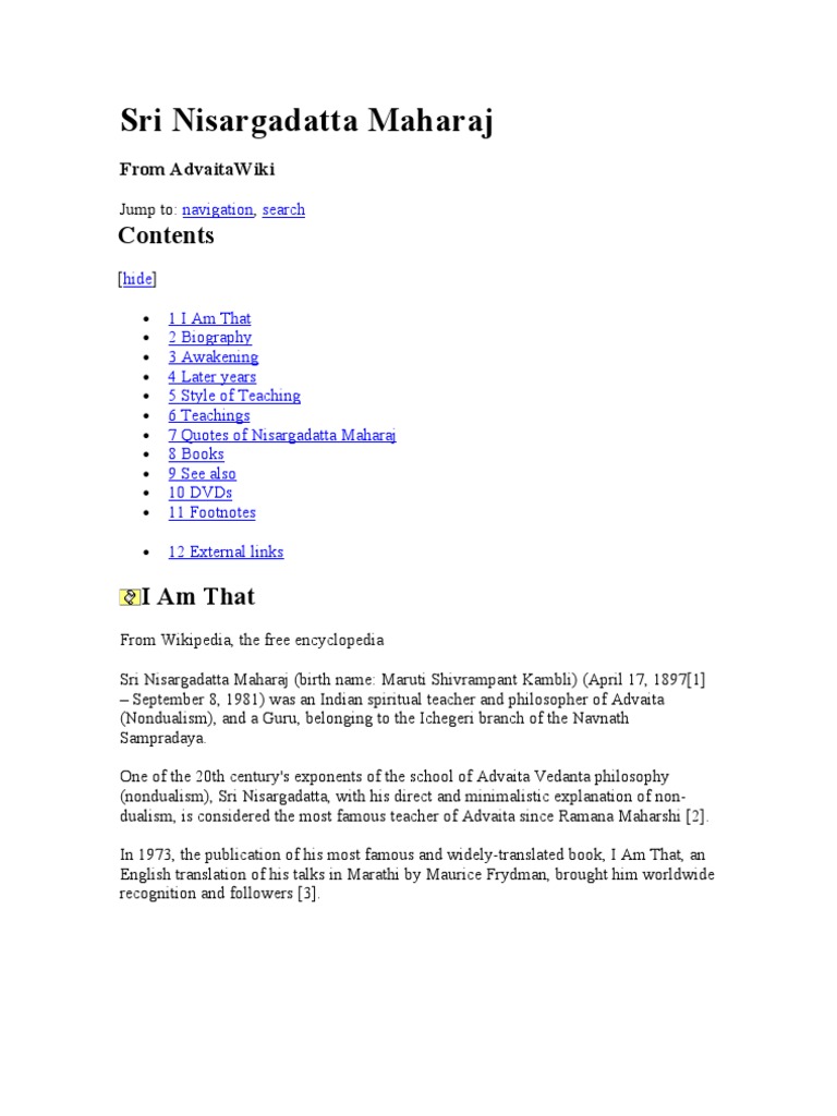 Nisargadatta maharaj the spiritual master of advaita vedanta nonduality and guru belonging to navnath sampradaya. In less than 3 years i realized this truth. sri nisargadatta maharaj. Once you know that death happens to the body and not to you, you just watch your body falling. Your constant flight from pain and search for.